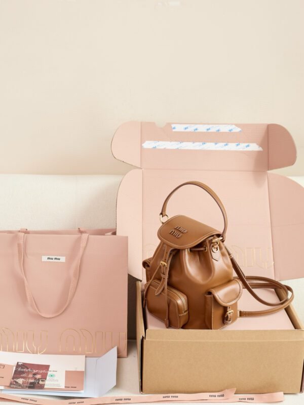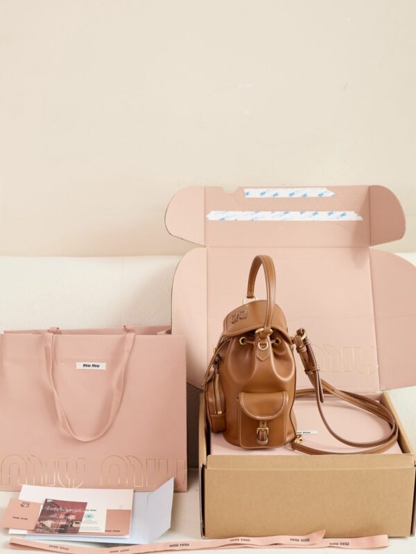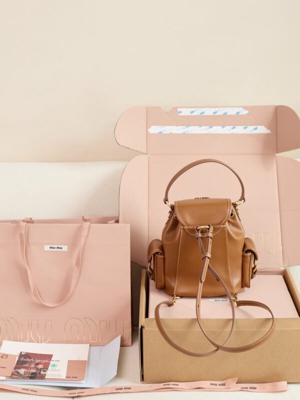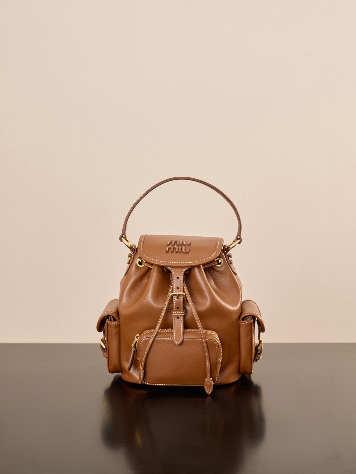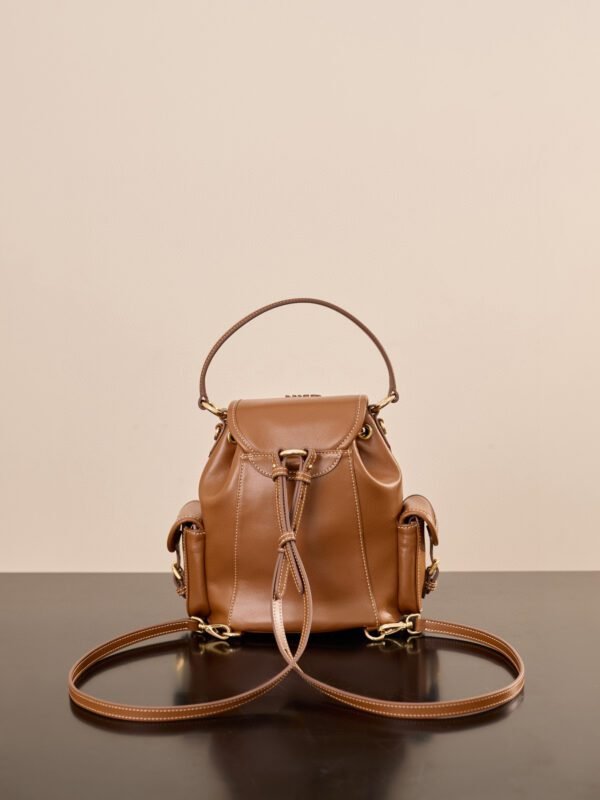 ???????????? ???????????? Calfskin Leather Backpack Small Size — Cognac Color