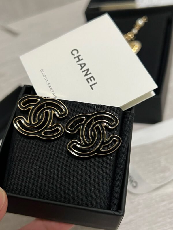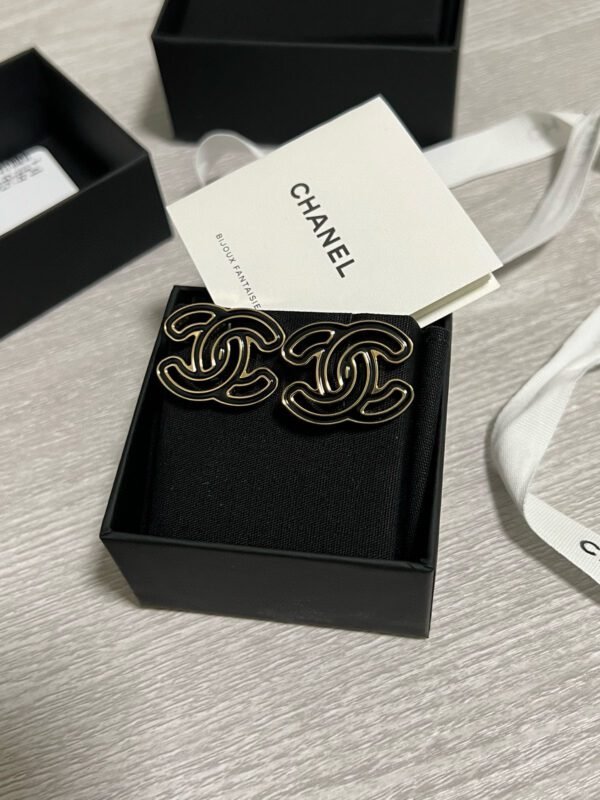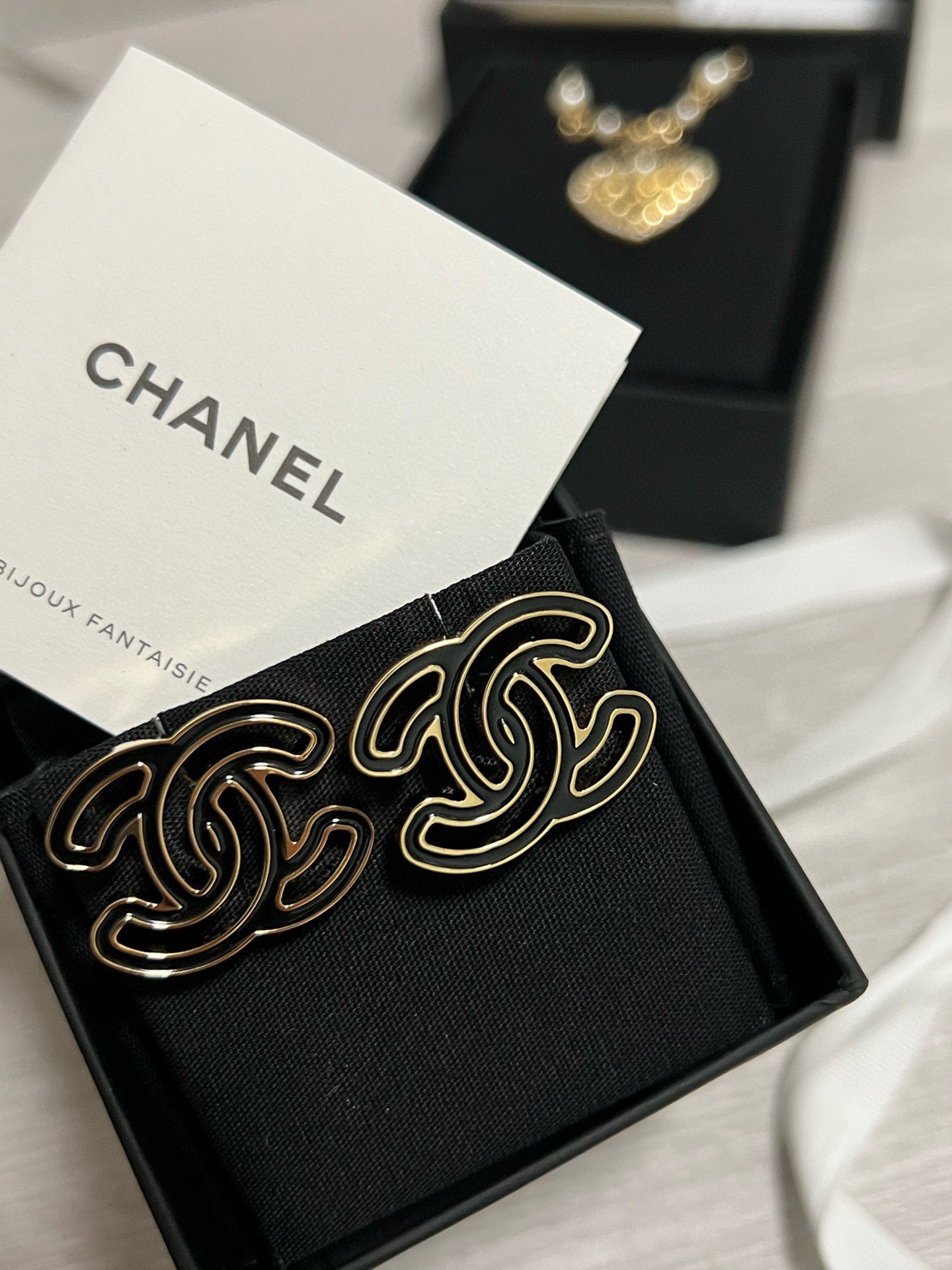 Be the first to review “Black enamel gold-trim hollow double C stud earrings” Cancel reply