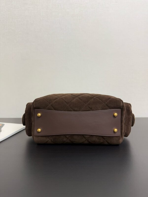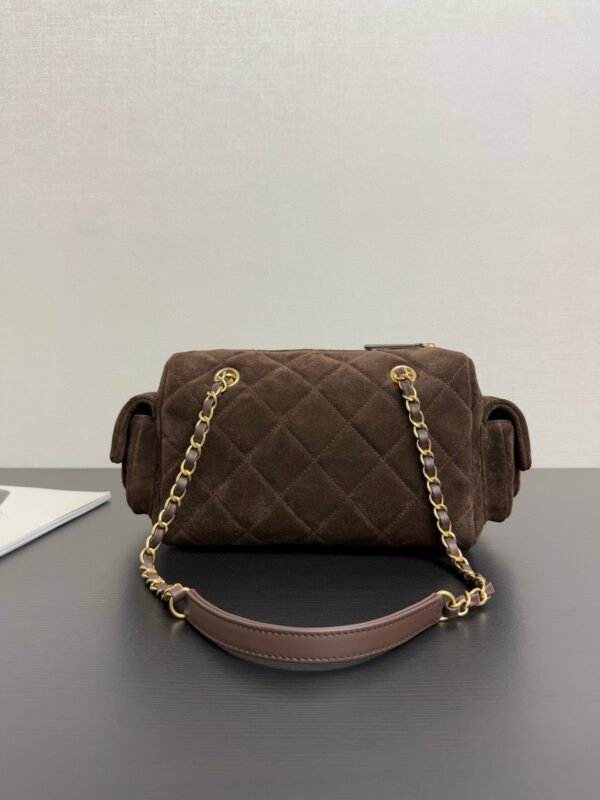 The diamond-quilted vintage style is fully on point, with gold buckle and chain details adding a perfect touch . The two side pockets are highly practical, ideal for storing headphones or car keys. Worn over the shoulder, it feels effortless yet sophisticated — a quality statement piece for autumn and winter outfits. Size: 15.5 × 24 × 11.5 cm.