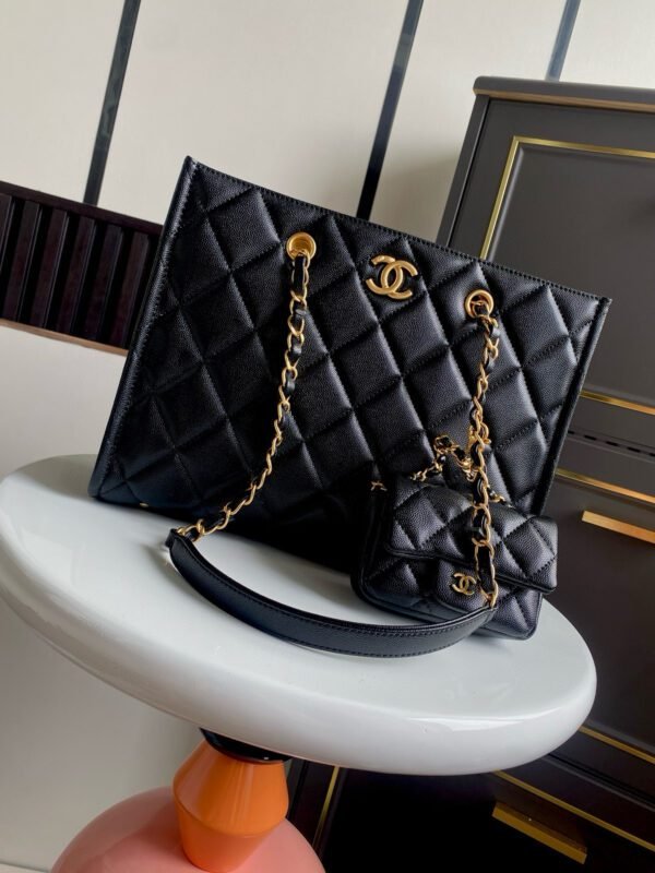 This season’s must-have piece with generous capacity. Features the classic chain design paired with pebbled calfskin — durable and long-lasting. The chain also includes a small pouch, adding an extra touch of elegance.
