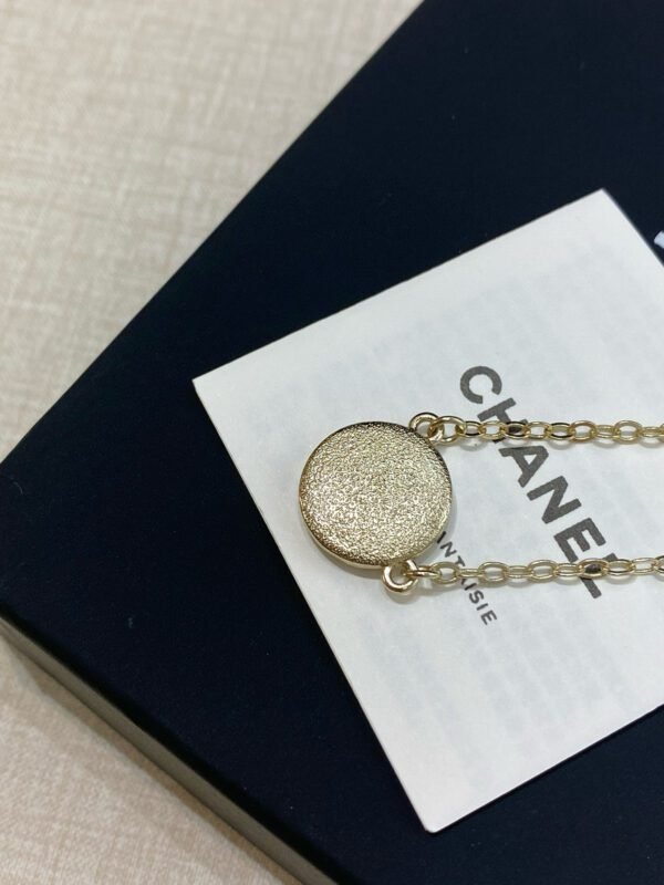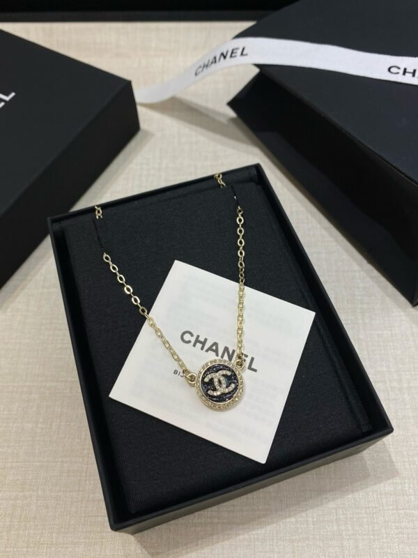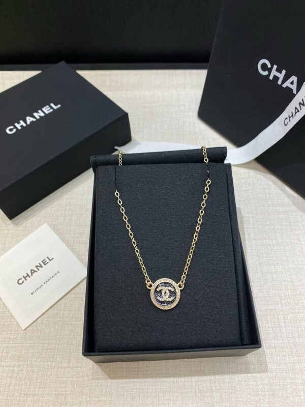 The chain is delicate, and the round pendant is fully set with fine crystals—subtle yet sparkling.