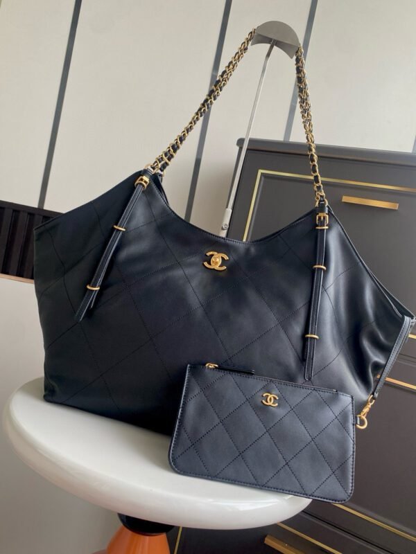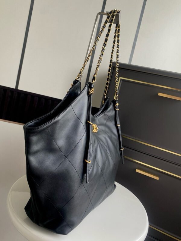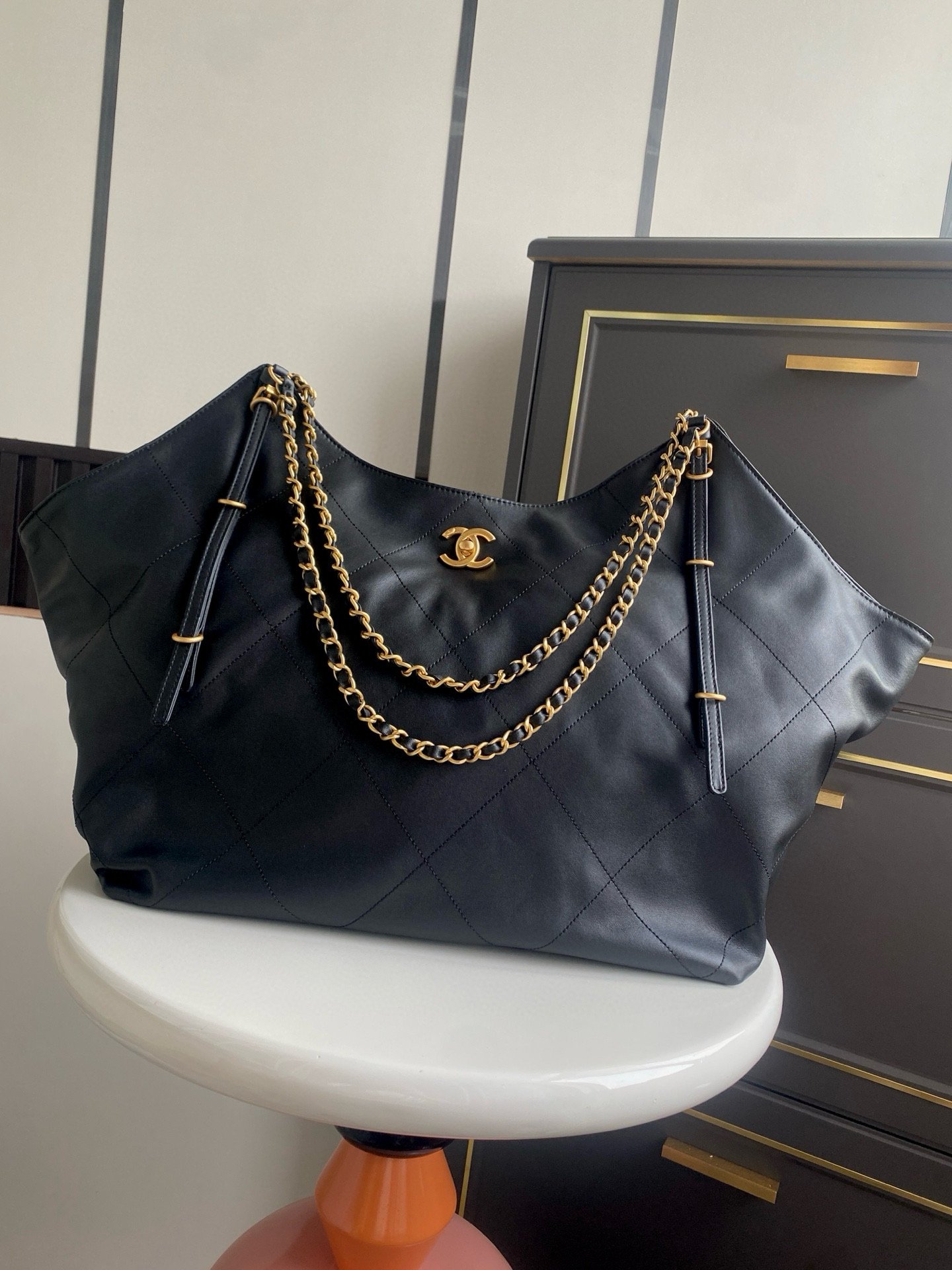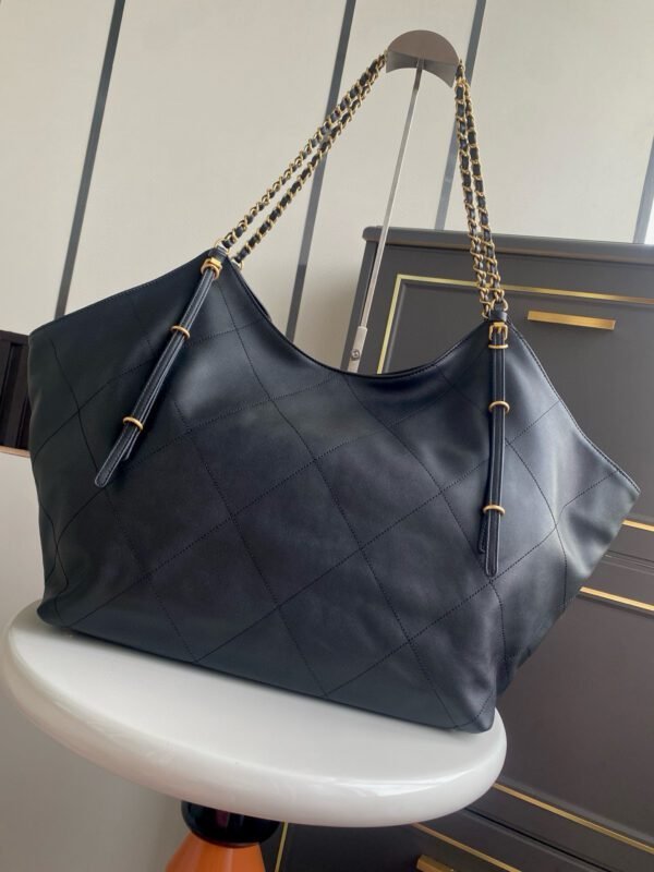 The highlight is the calfskin material — lightweight and comfortable to carry. Both sizes are stunning, but personally, I prefer the larger one since oversized bags tend to make you look slimmer.