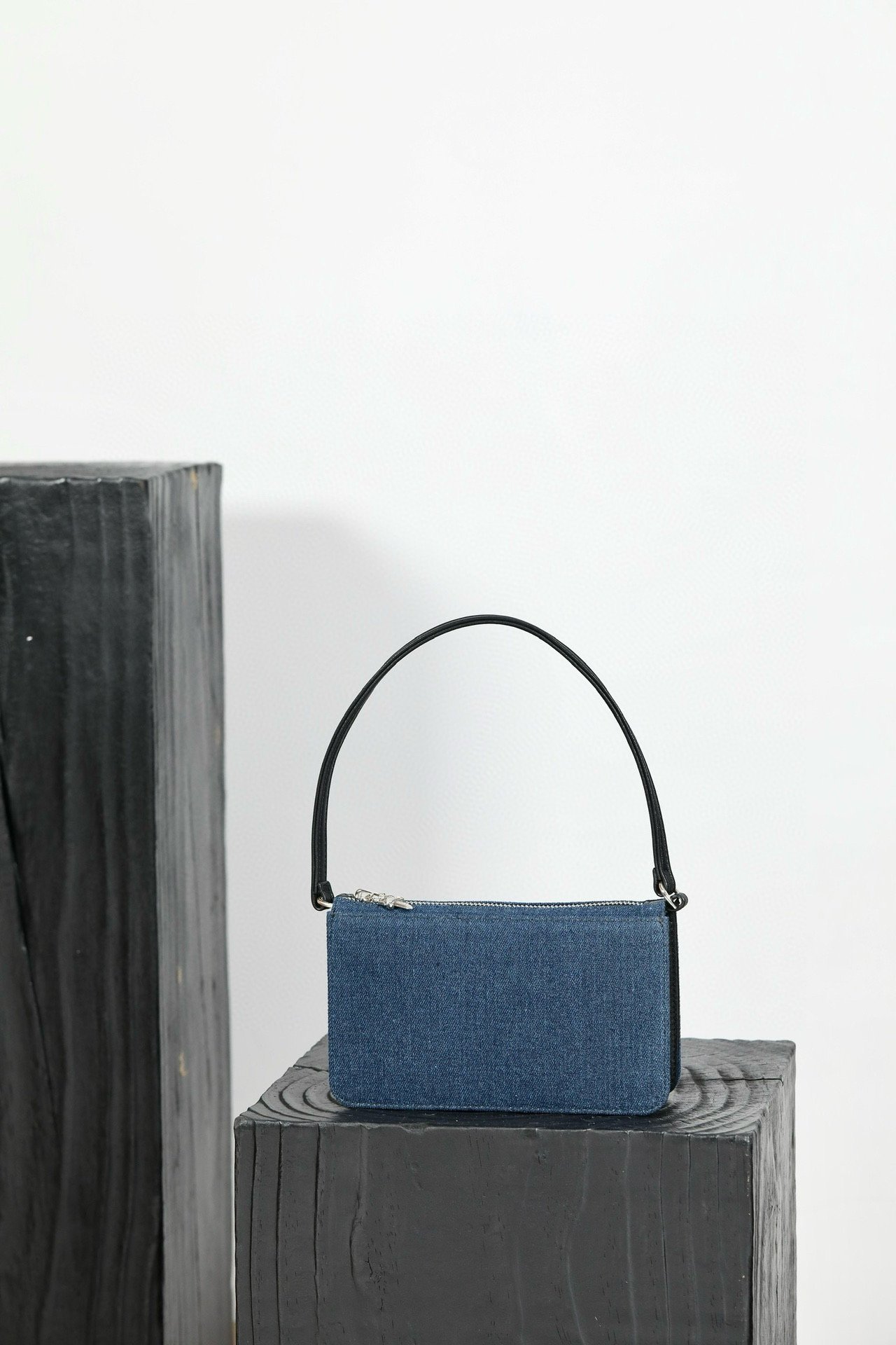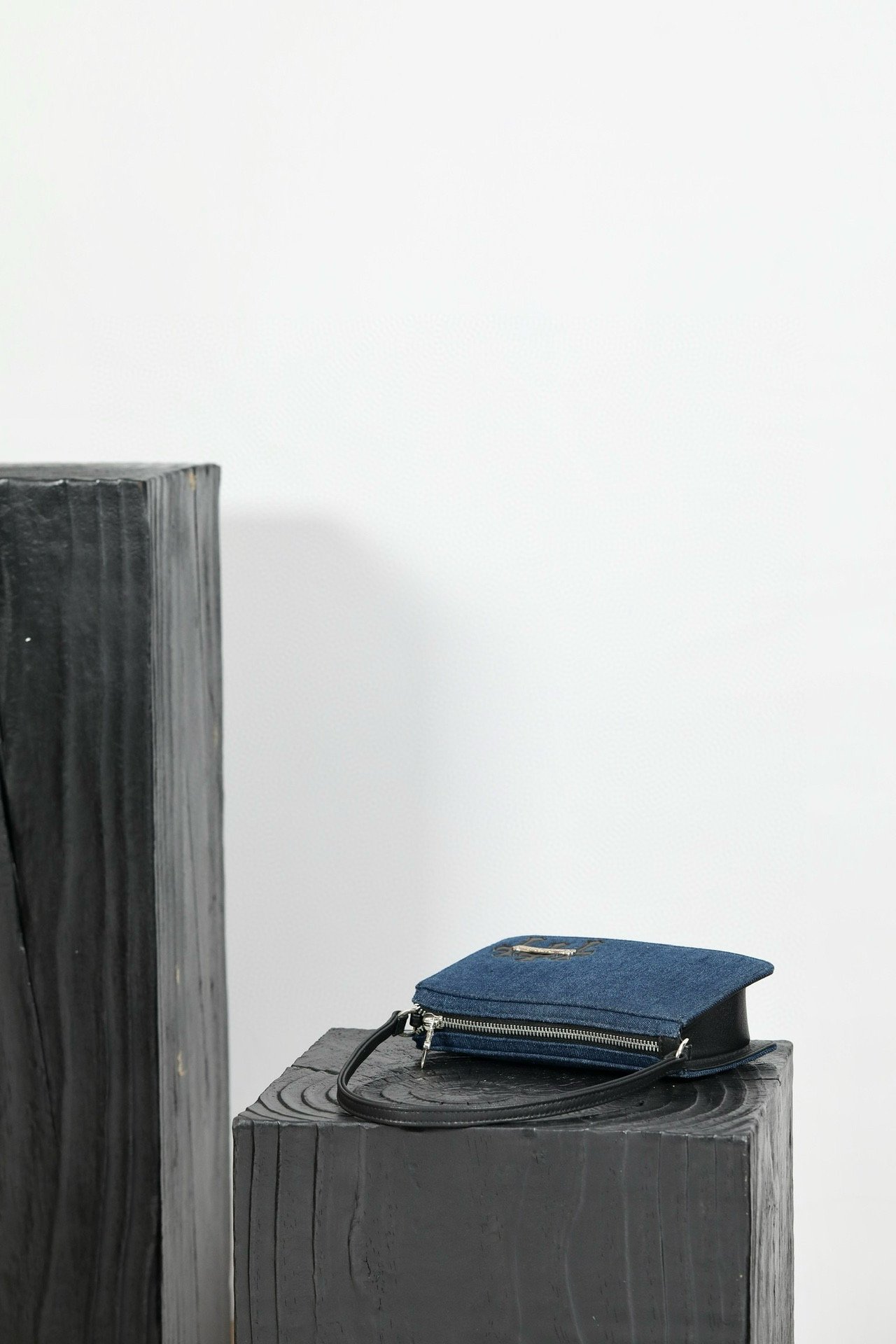 Color: denim/tumbled cowhide/black sword jacquard lining