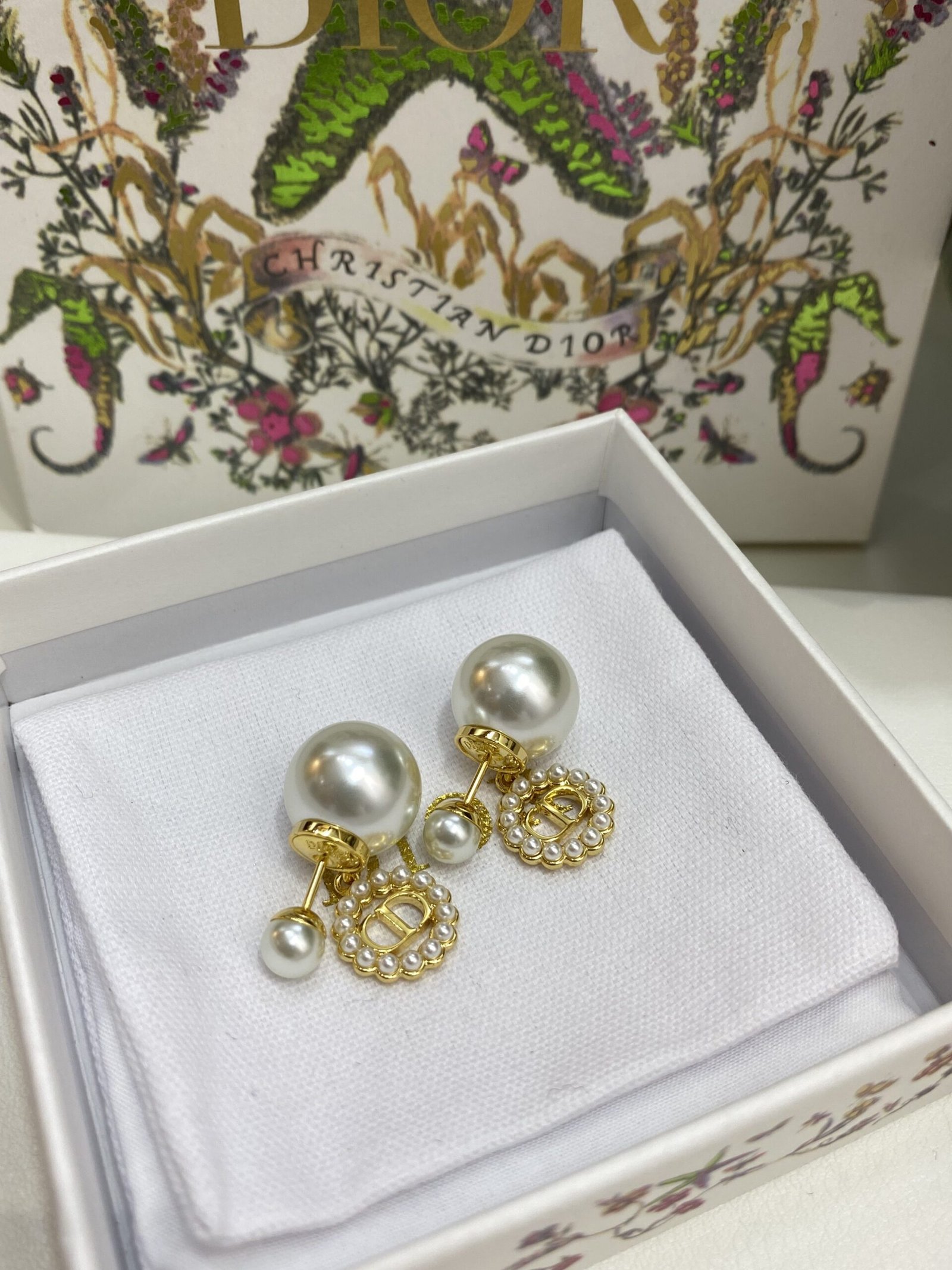 Dior Mixed Pearl CD Stud Earrings