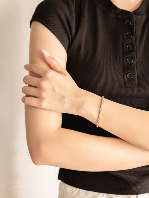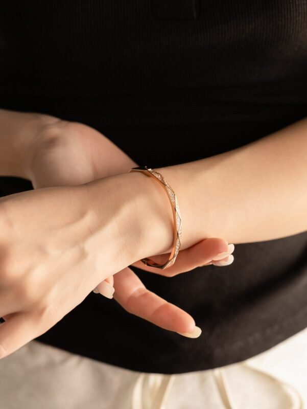 Brand-new Laurence bracelet featuring half of the surface hand-set with diamonds, while the other side showcases a sharp, faceted design for a captivating style.