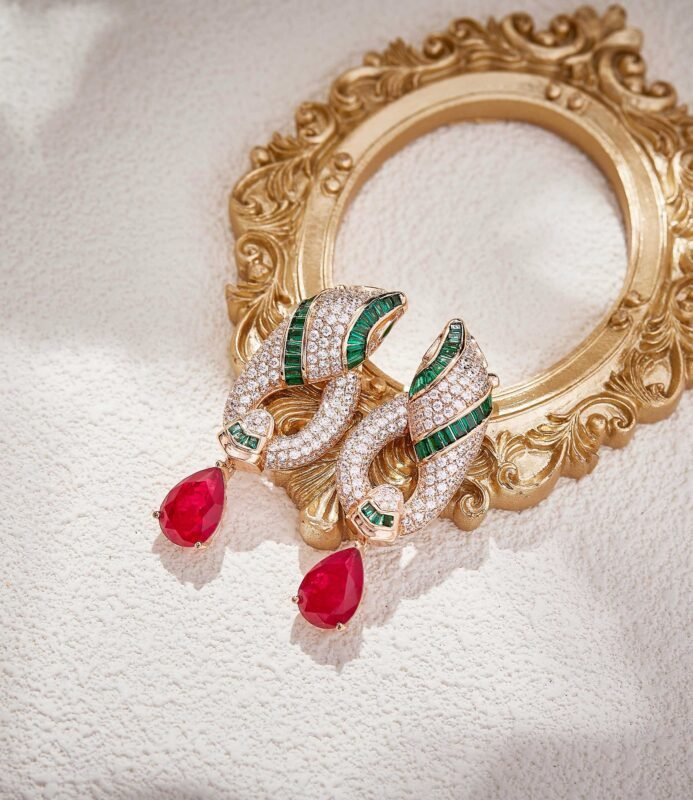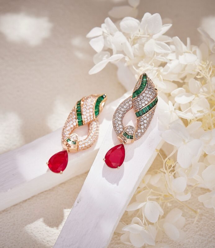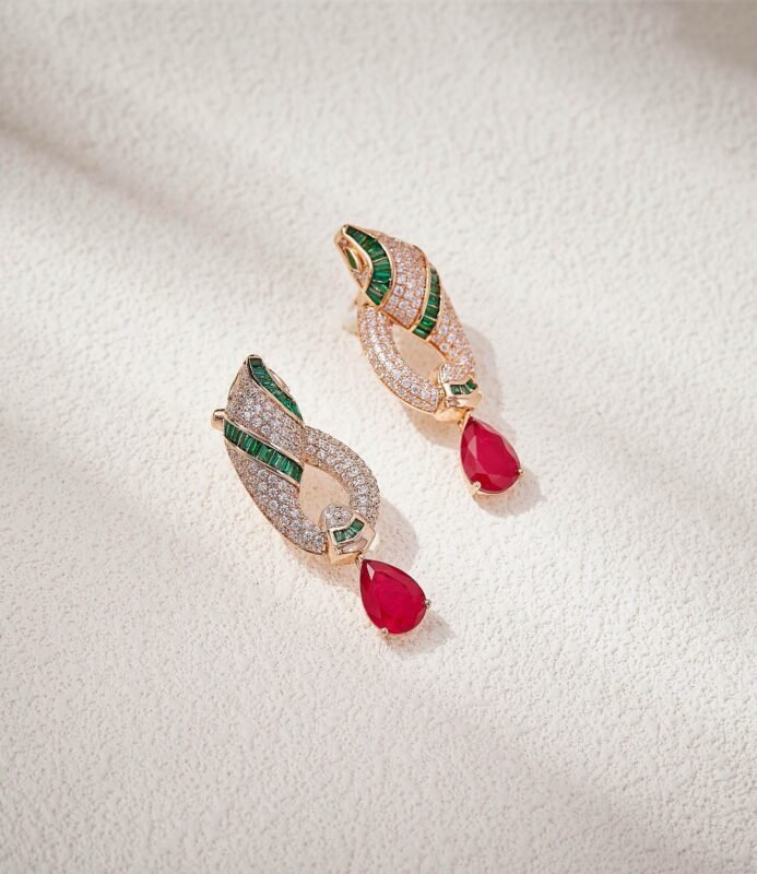 These snake-shaped earrings are breathtakingly beautiful ???? The alloy coils into a lifelike serpent form, with green stones glinting like piercing snake eyes and red gems dangling like frozen flames. Slip them on, and wild allure meets refined glamour — the perfect blend of seduction and strength. Truly, the embodiment of irresistible luxury ✨ Made of alloy, plated in champagne gold and white gold.
