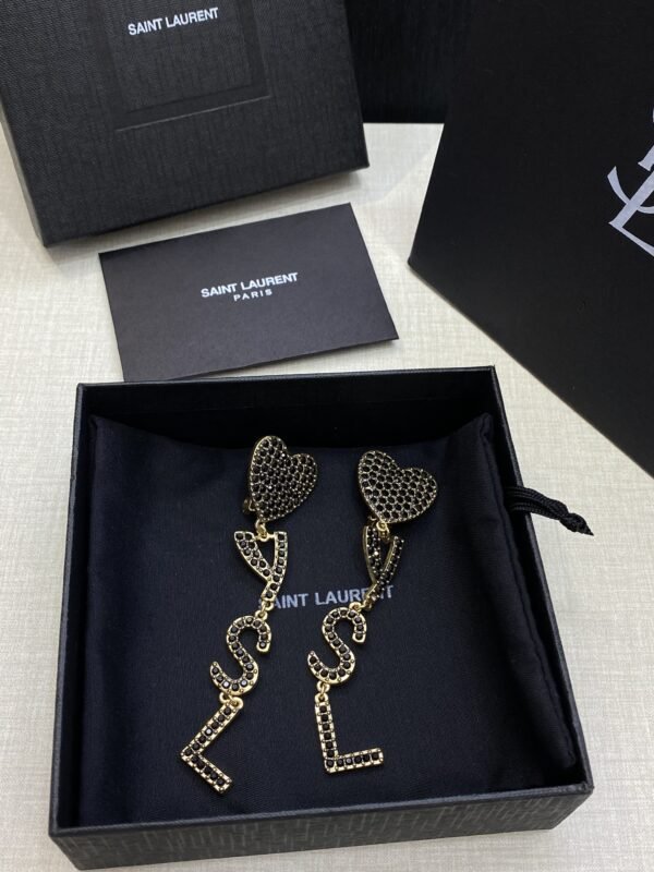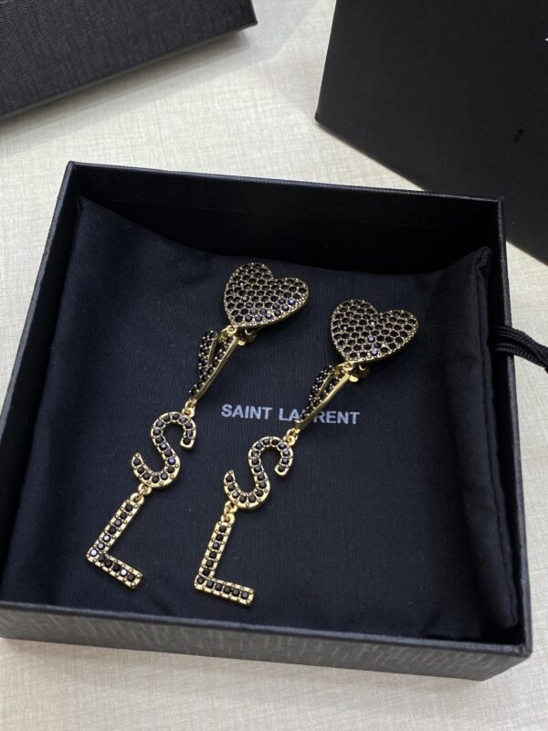 Saint Laurent Vintage Heart Letter Crystal Ear Clips