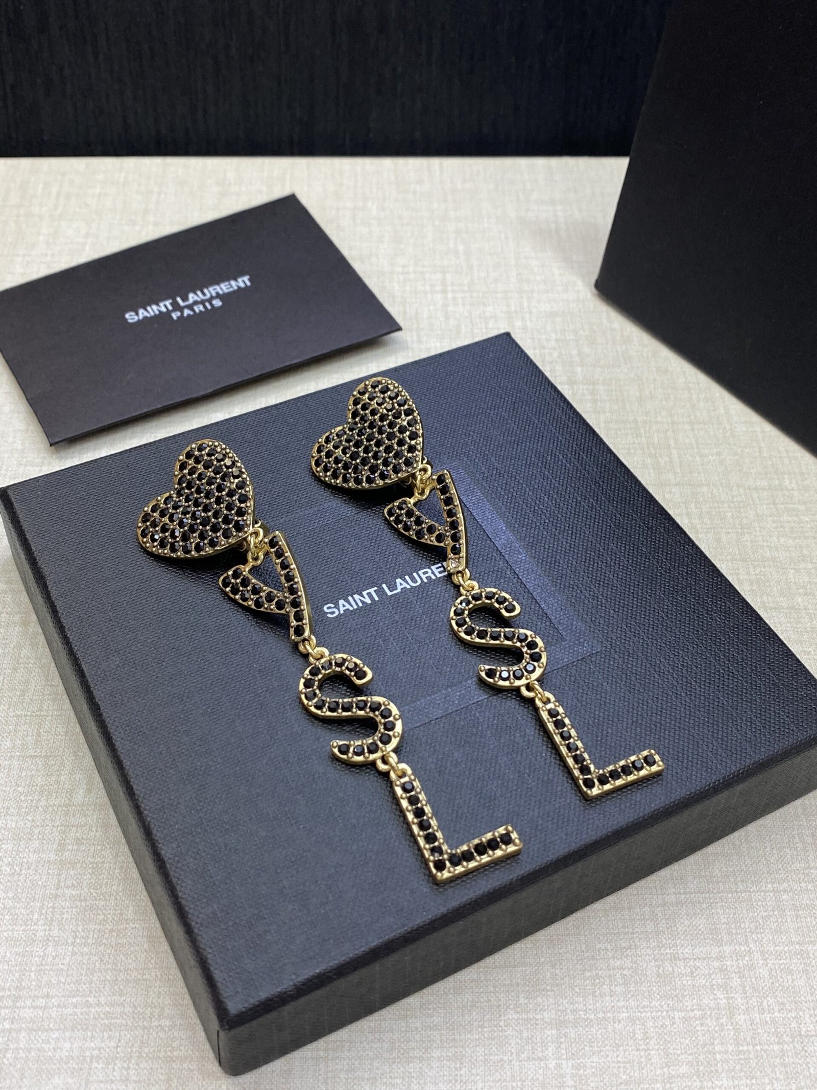 Saint Laurent Vintage Heart Letter Crystal Ear Clips