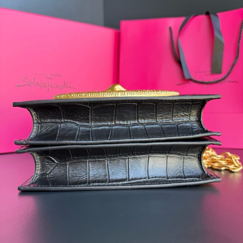 schiaparelli Structured Black Crocodile-Pattern Handbag