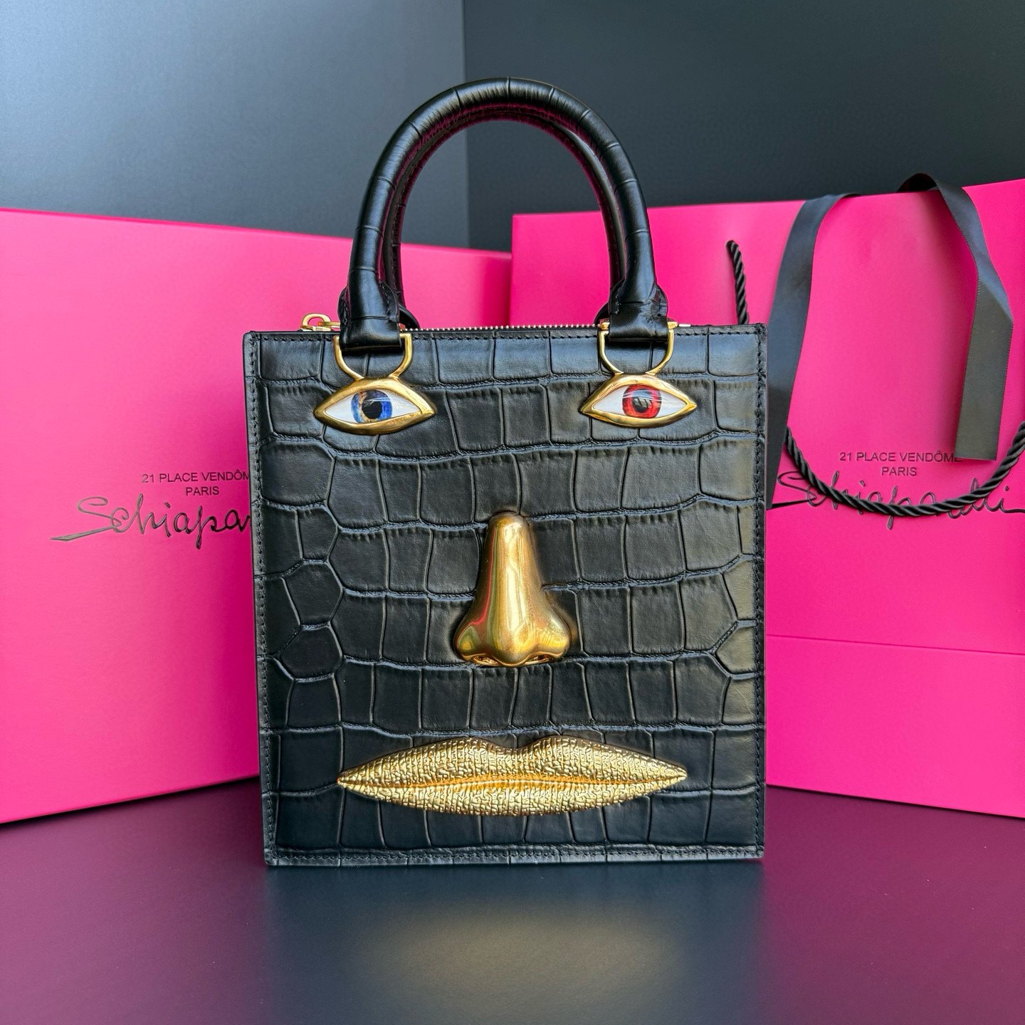 Be the first to review “schiaparelli Structured Black Crocodile-Pattern Handbag” Cancel reply